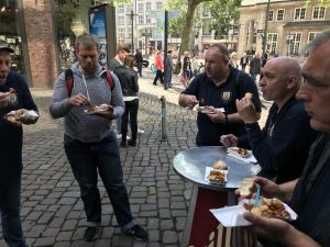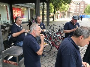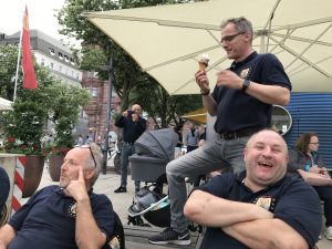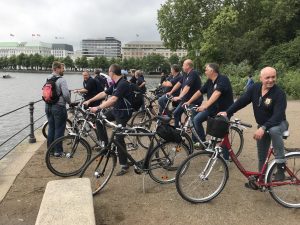 Wie schon vor fünf Jahren stand erneut eine Radtour in Hamburg an. Andere Tour, anderer Guide. Vincent gab alles und machte den Tag mit seinem Hamburger Slang zum Erlebnis. Das Essen im Hofbräuhaus war wieder hervorragend und bevor wir die Heimfahrt antraten, gab es noch einen Absacker im Alex. Den schönen Tag ließen wir bei Bruder Wilhelm ausklingen.