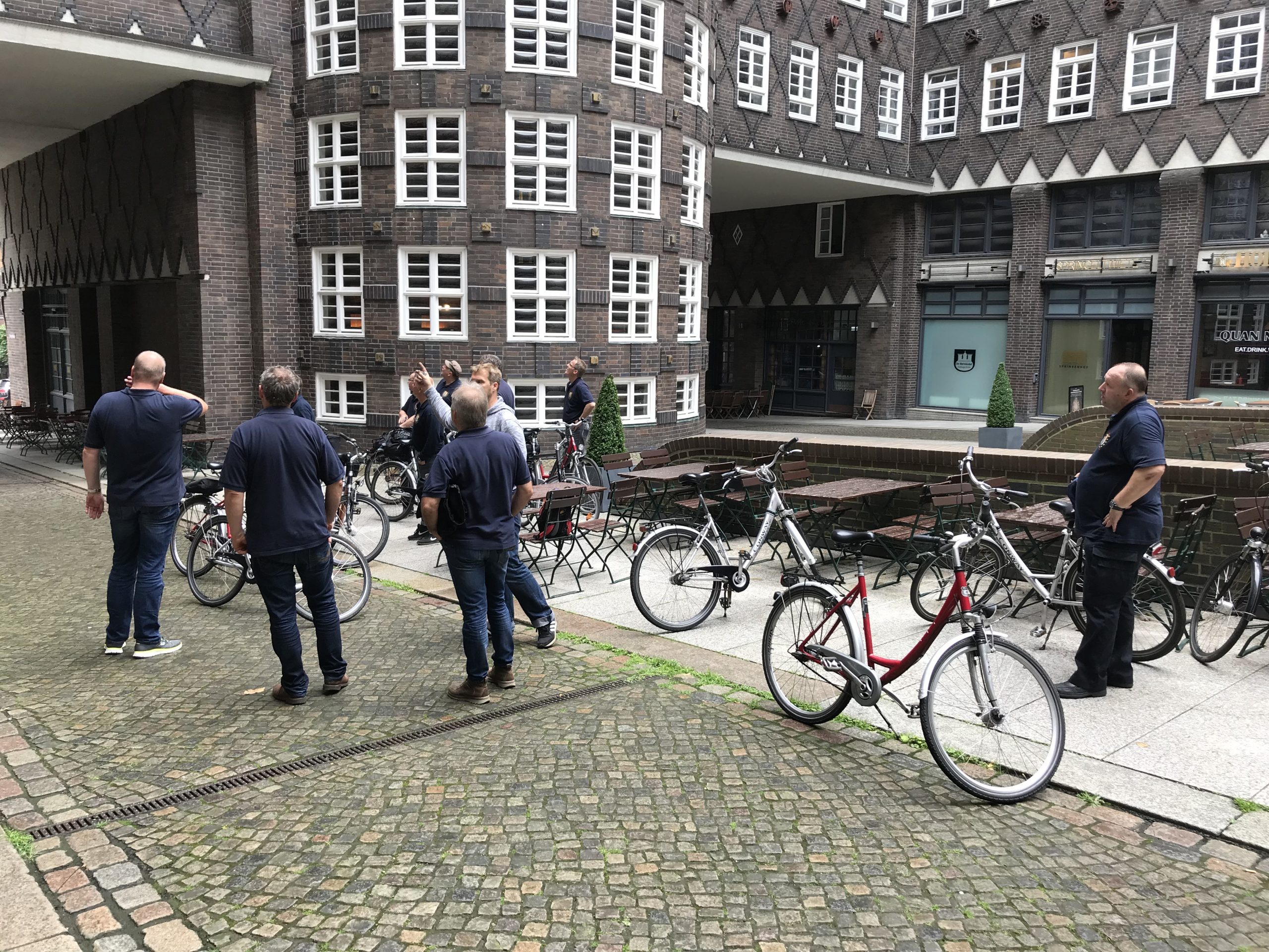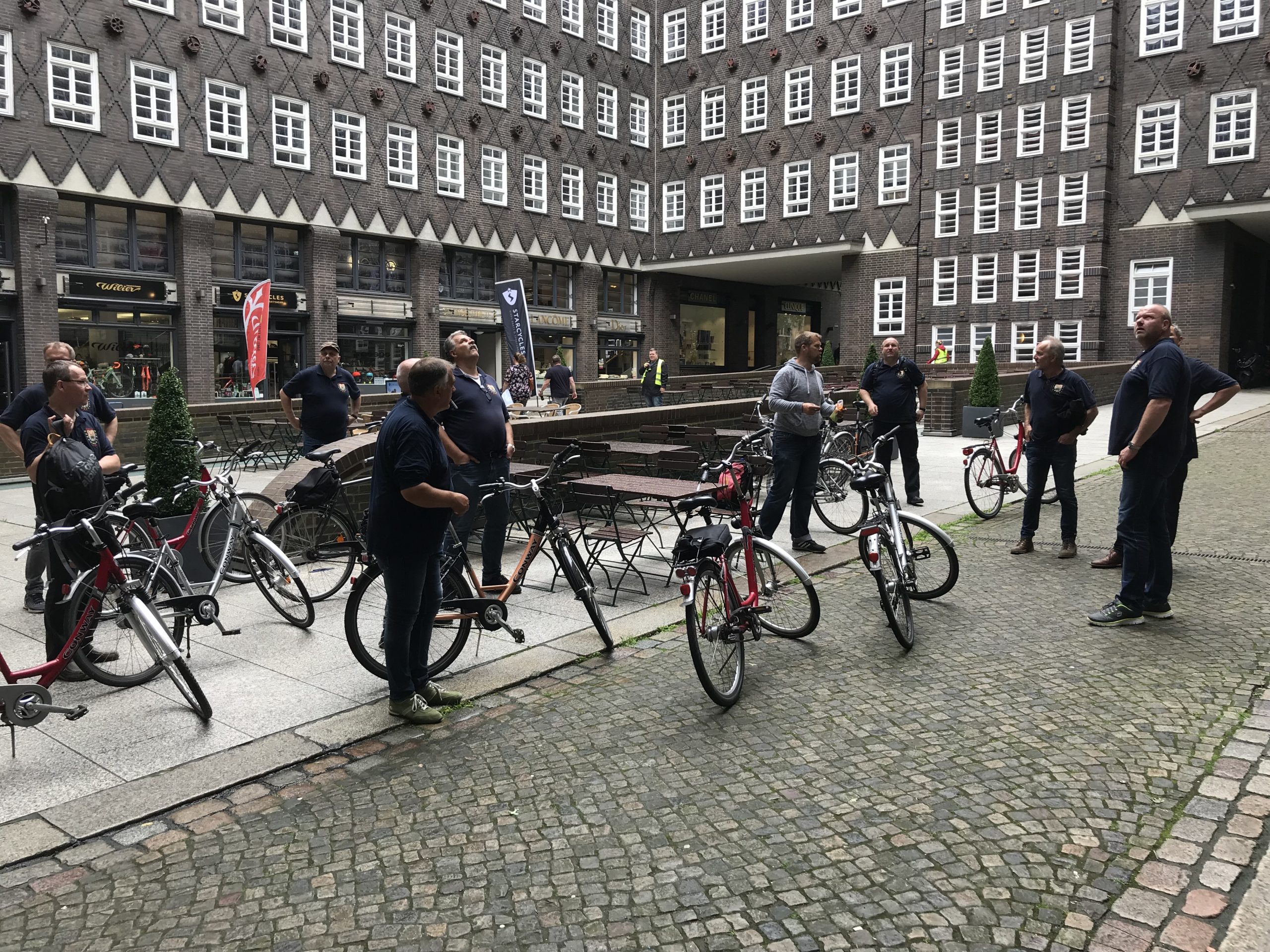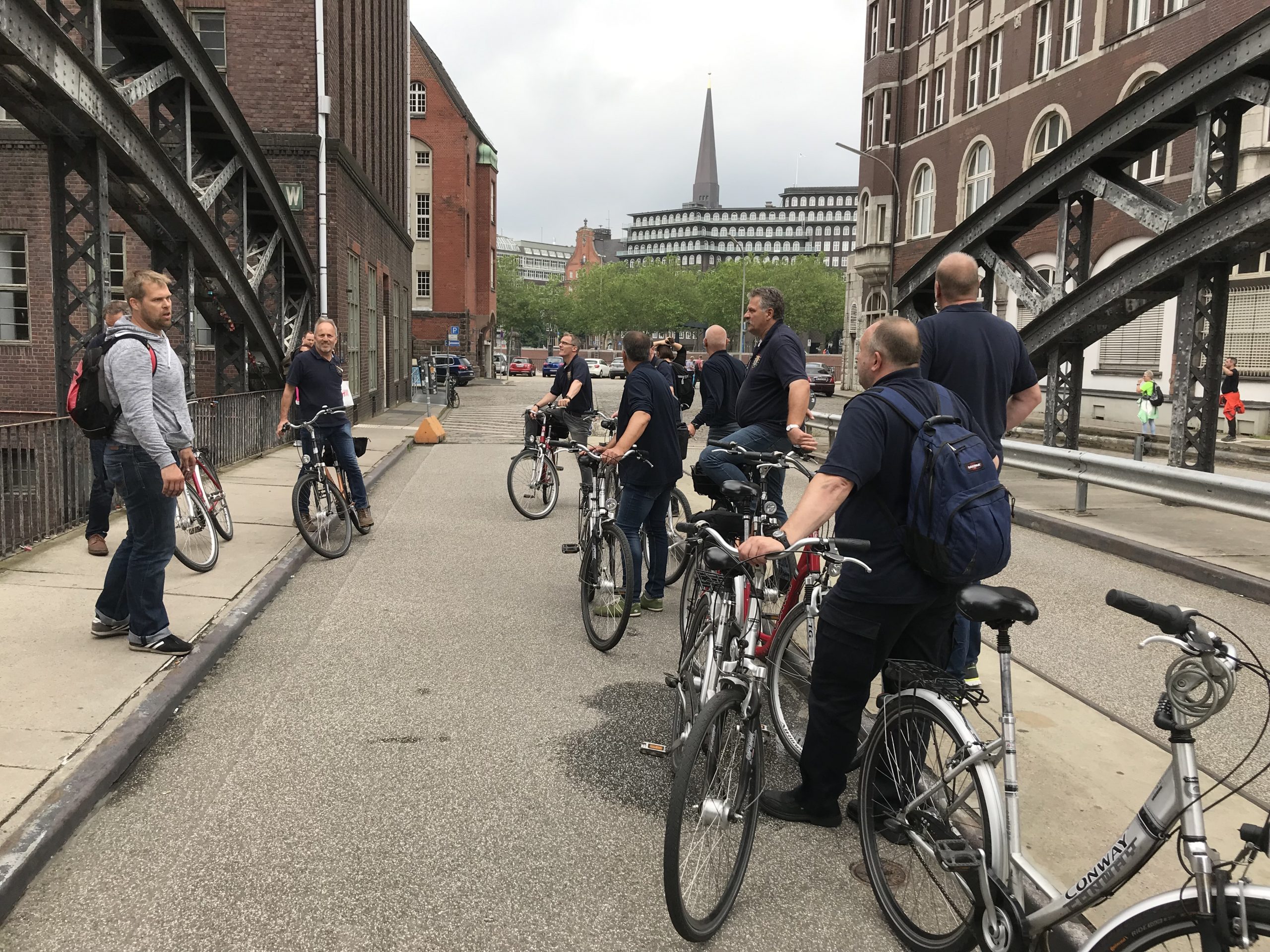 Wie schon vor fünf Jahren stand erneut eine Radtour in Hamburg an. Andere Tour, anderer Guide. Vincent gab alles und machte den Tag mit seinem Hamburger Slang zum Erlebnis. Das Essen im Hofbräuhaus war wieder hervorragend und bevor wir die Heimfahrt antraten, gab es noch einen Absacker im Alex. Den schönen Tag ließen wir bei Bruder Wilhelm ausklingen.