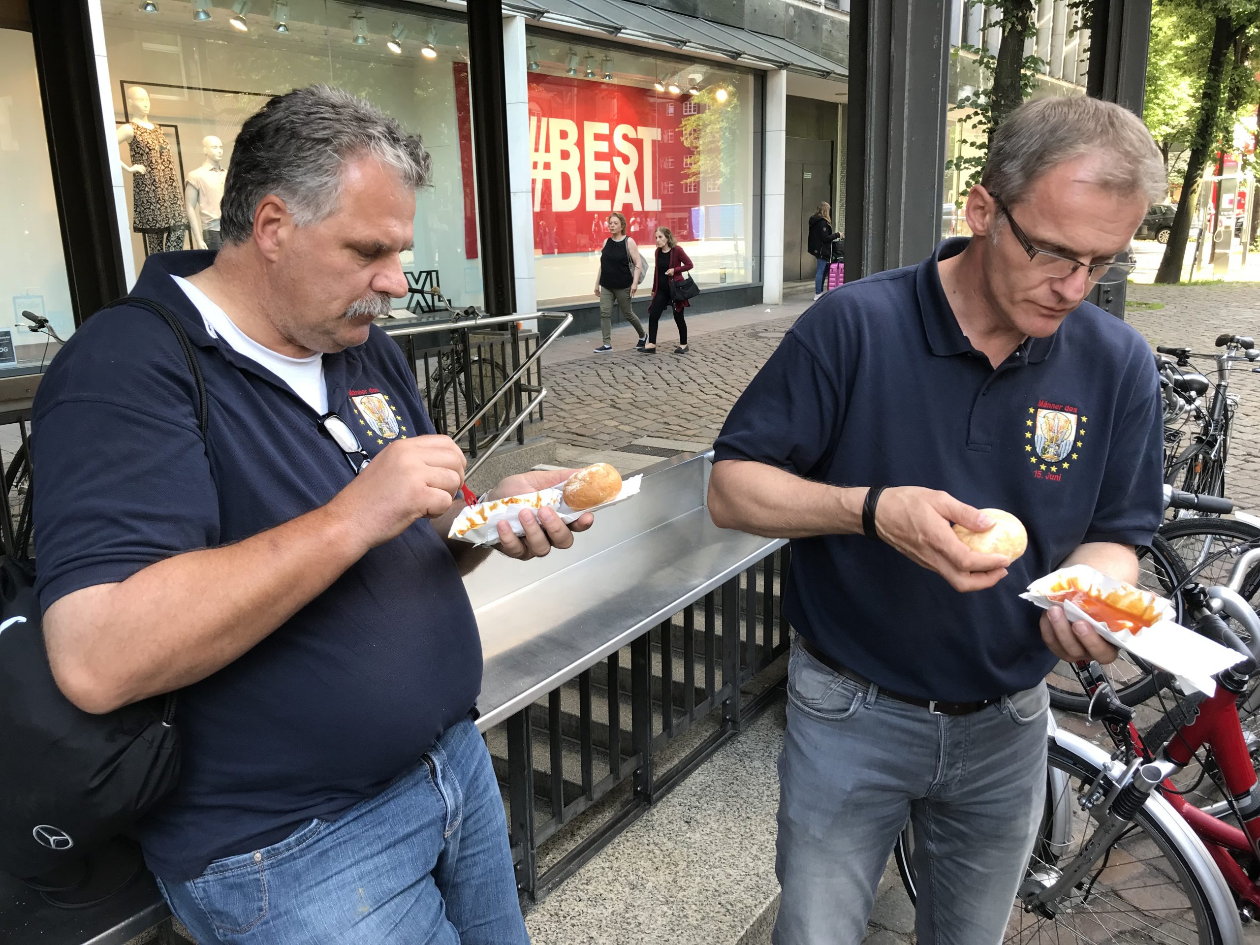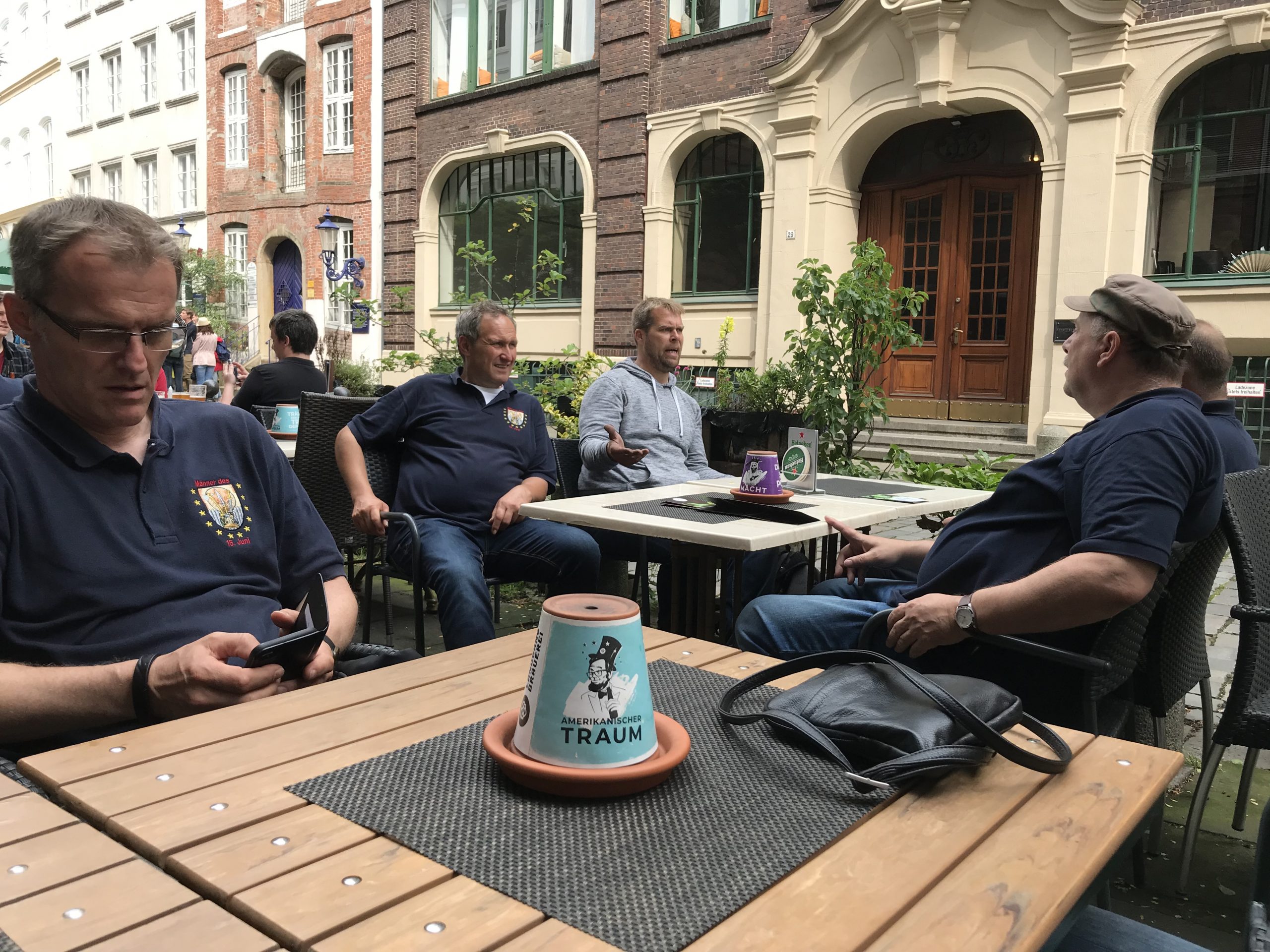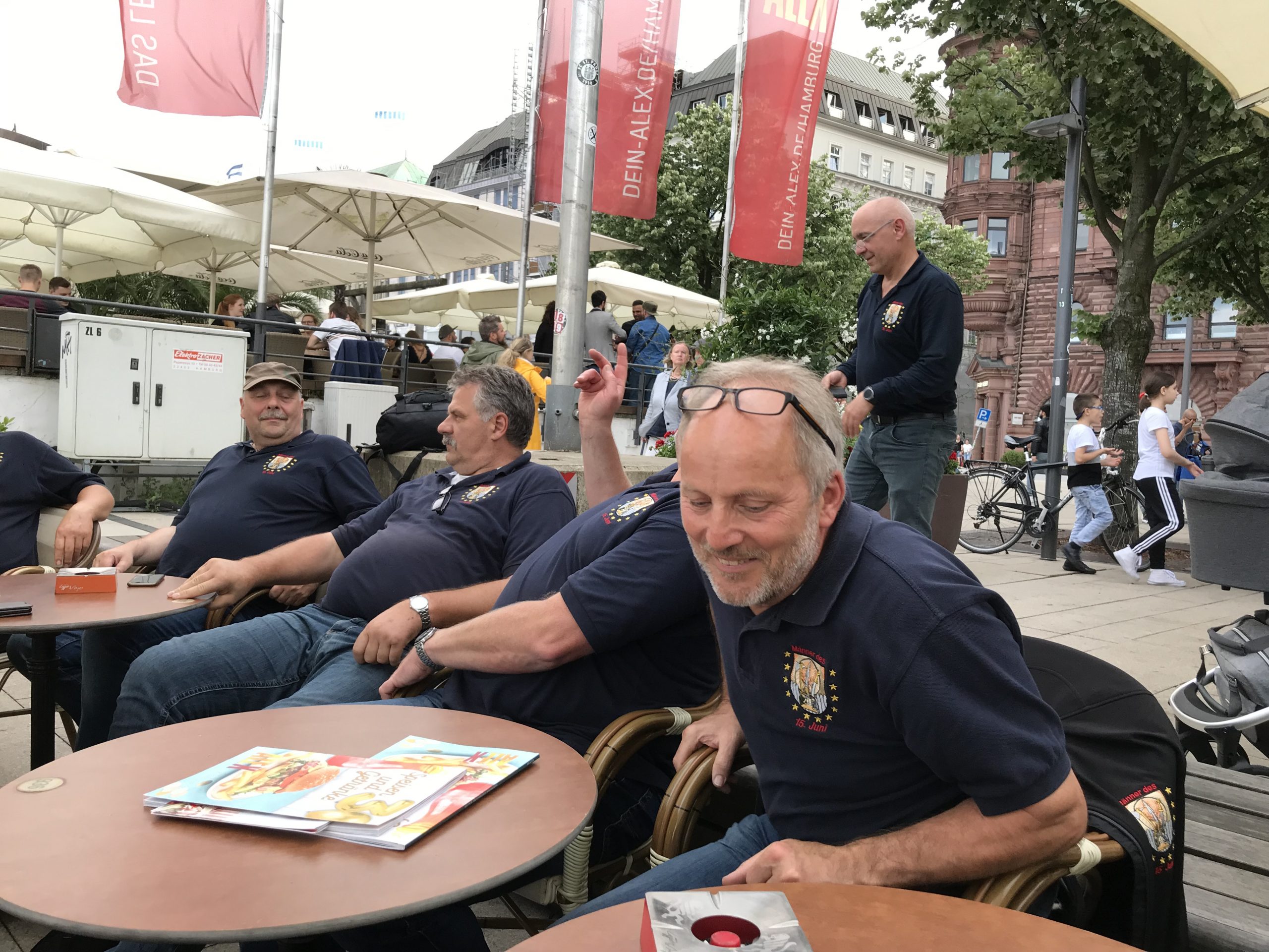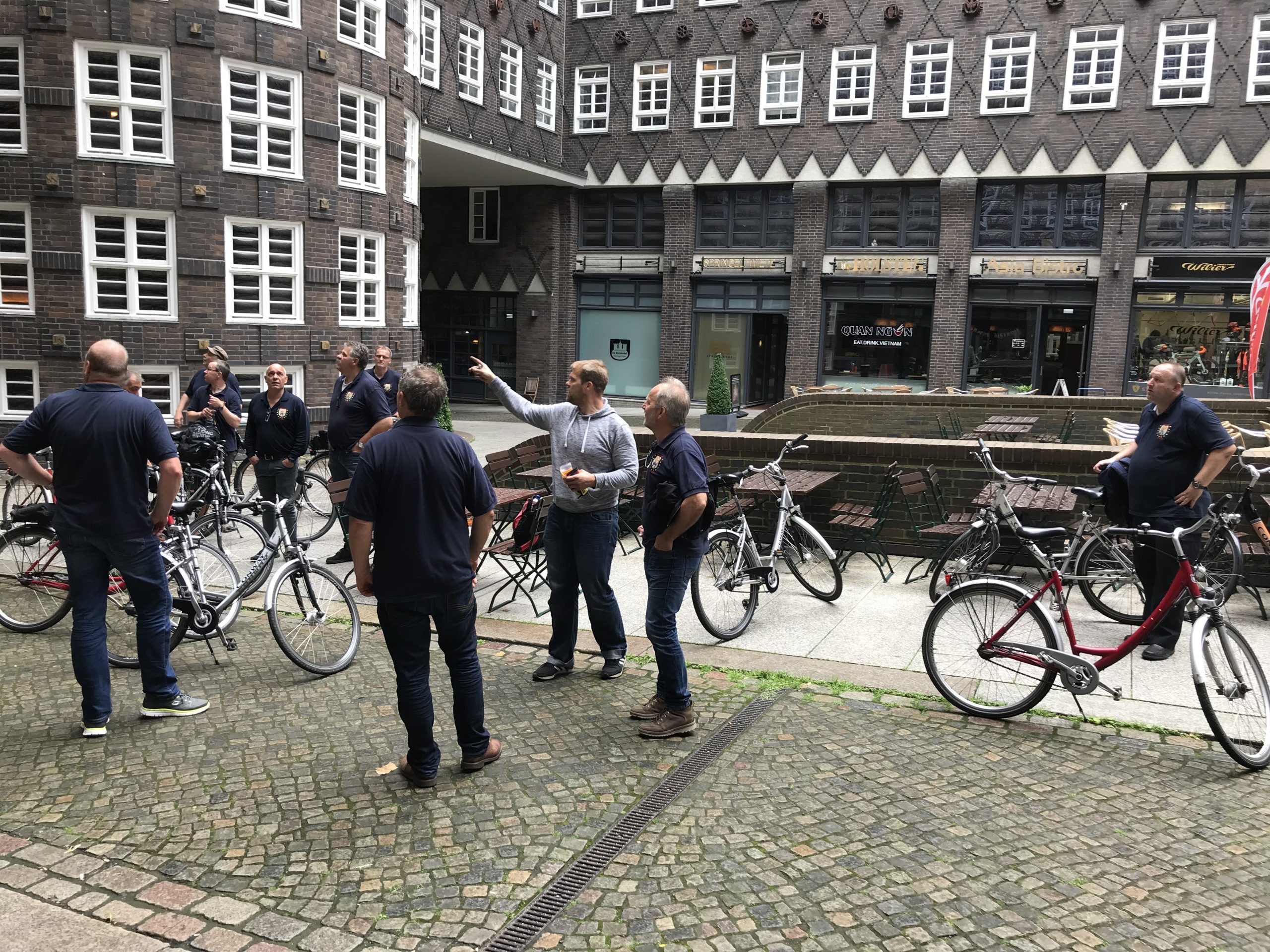 Wie schon vor fünf Jahren stand erneut eine Radtour in Hamburg an. Andere Tour, anderer Guide. Vincent gab alles und machte den Tag mit seinem Hamburger Slang zum Erlebnis. Das Essen im Hofbräuhaus war wieder hervorragend und bevor wir die Heimfahrt antraten, gab es noch einen Absacker im Alex. Den schönen Tag ließen wir bei Bruder Wilhelm ausklingen.