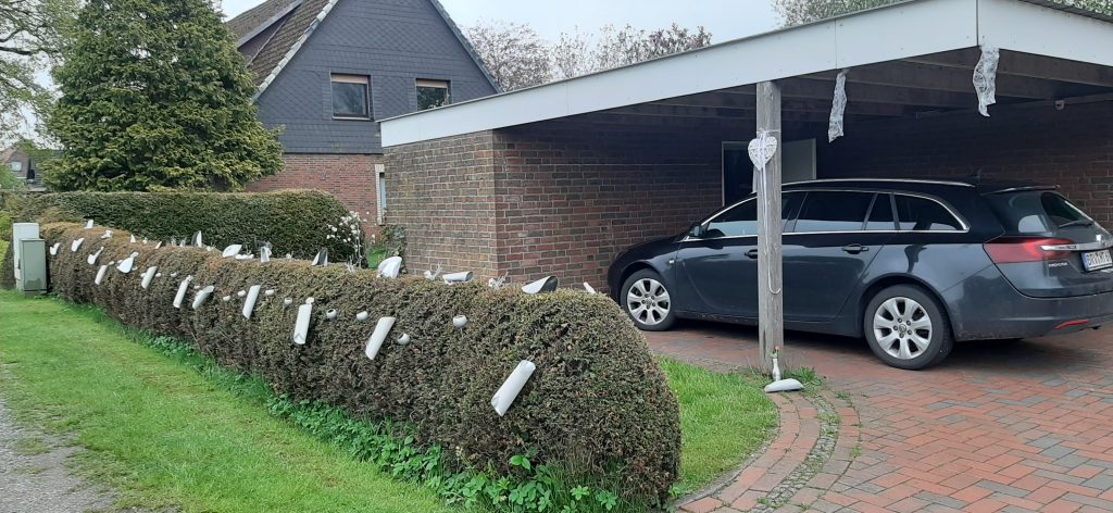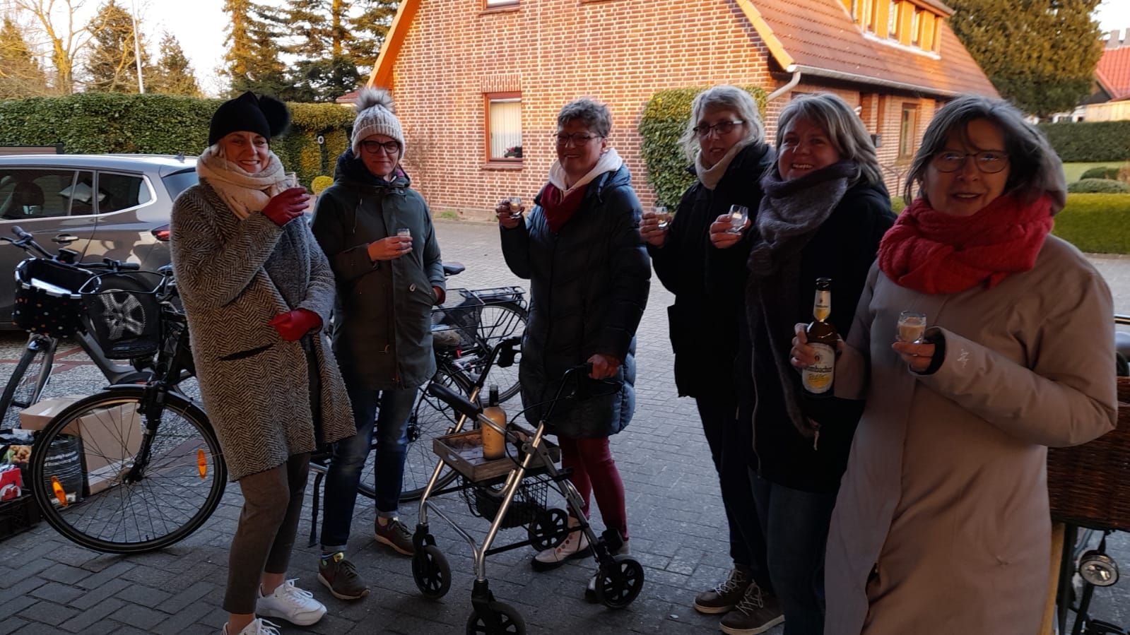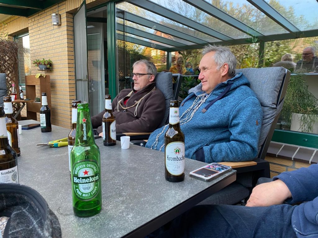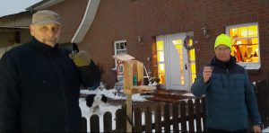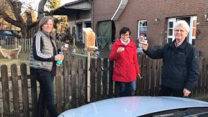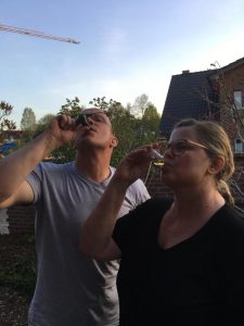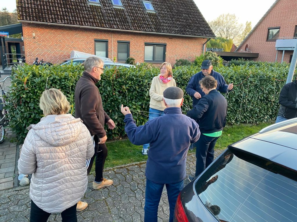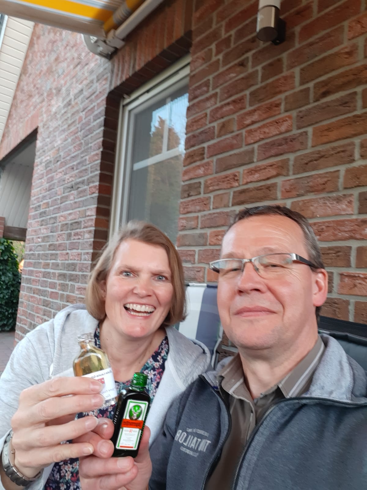 Das ist zwar nichts Neues aber in dieser Zeit der Kontaktbeschränkungen eine echte Herausforderung, die Lars und Sonja bravourös meisterten, indem sie Flachmänner und eine Einladung zum Anstoßen verteilten.