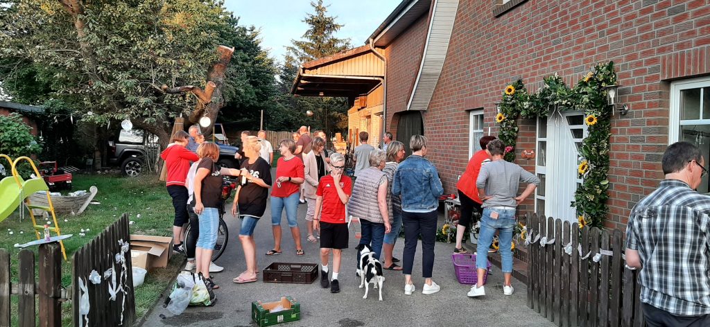 Eine Abordnung der Walkies ließ es sich, trotz immer noch bestehender Beschränkungen, nicht nehmen den Garten von Manni & Anke zu deren Ehrentag zu schmücken.